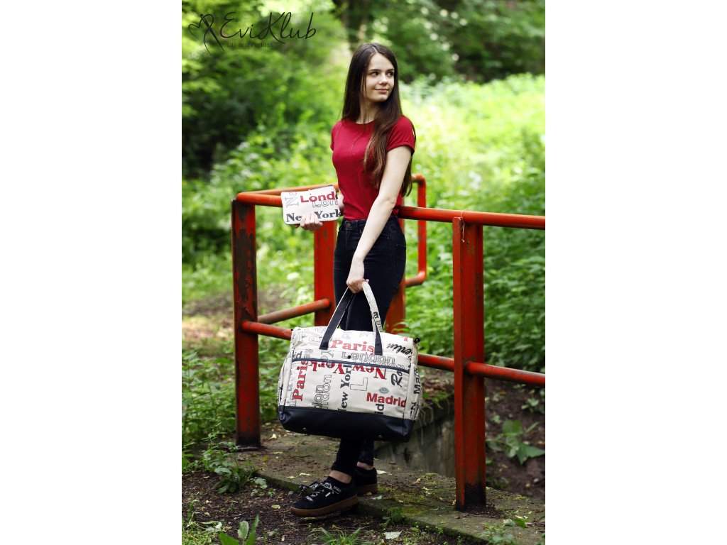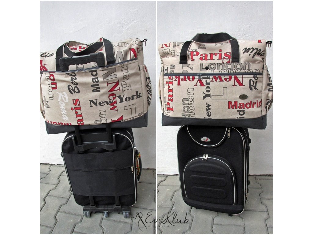 Přední i zadní díl je hladký, nečleněný, jen s našitými nakládanými kapsami. Na PD je dvojitá zipová kapsa, na ZD zipová kapsa v pruhu pro navlečení madla kufru u cestovky nebo klasická nakládaná kapsa u kabelky. Vstup do tašky je celý uzavřený, zapínaný po celé délce na zip, který uzavírají poutka na připnutí zkracovacího popruhu. Na obdélníkovém dnu je našitá koženka, která volně přechází až do hlavních dílů, které tímto chrání před ušpiněním a odřením. Dno je taktéž chráněno kovovými nožičkami. Varianta cestovka má na vnějších bočních dílech našité hluboké kapsy s gumou v horní části. Uvnitř jsou na jedné straně 3D kapsy se záhyby, na druhé straně 2 kapsy na gumu.
