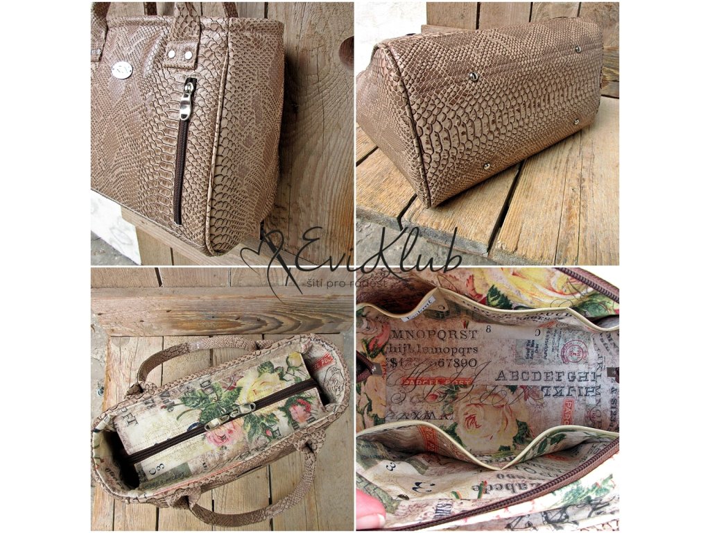 Kabelku lze ušít v různých variacích a velikostech jako látkovou nebo v kombinaci látka + koženka nebo celokoženkovou.