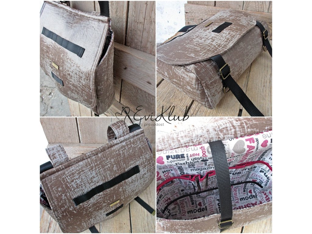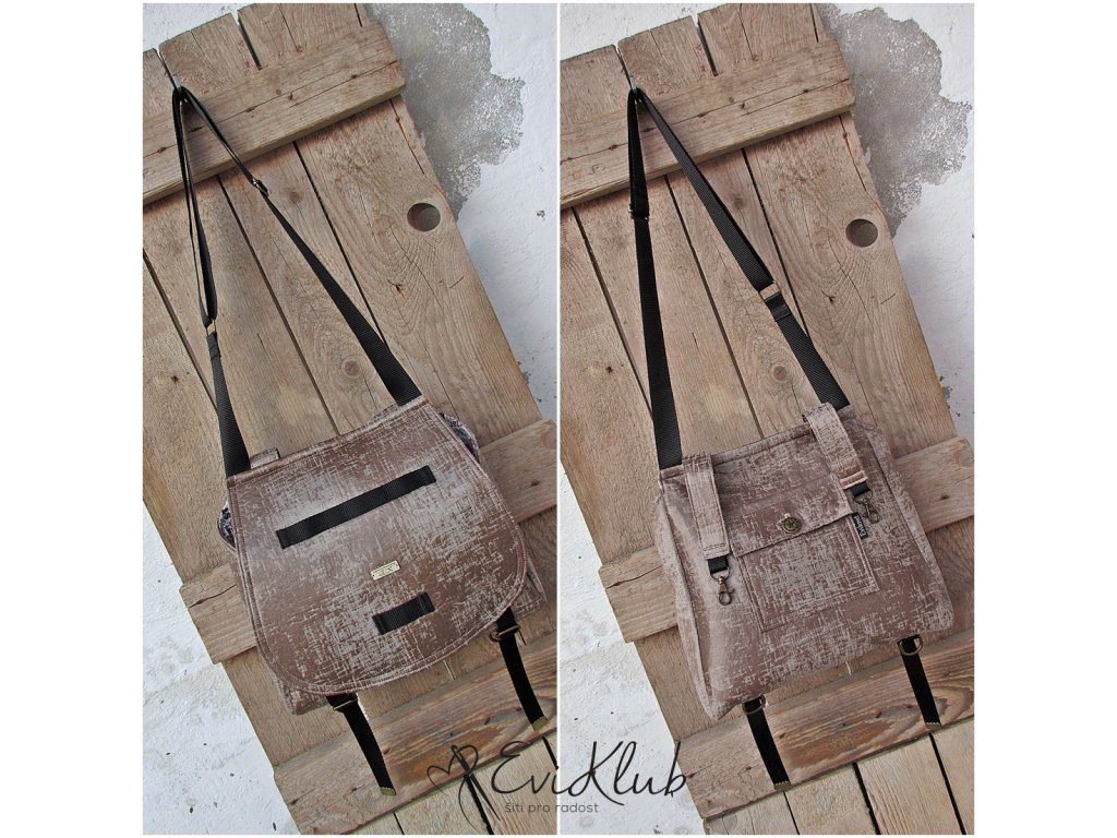 Lze ušít v různých variacích a velikostech jako látkovou nebo v kombinaci látka + koženka, či celokoženkovou. Naše doporučení je celolátková varianta.