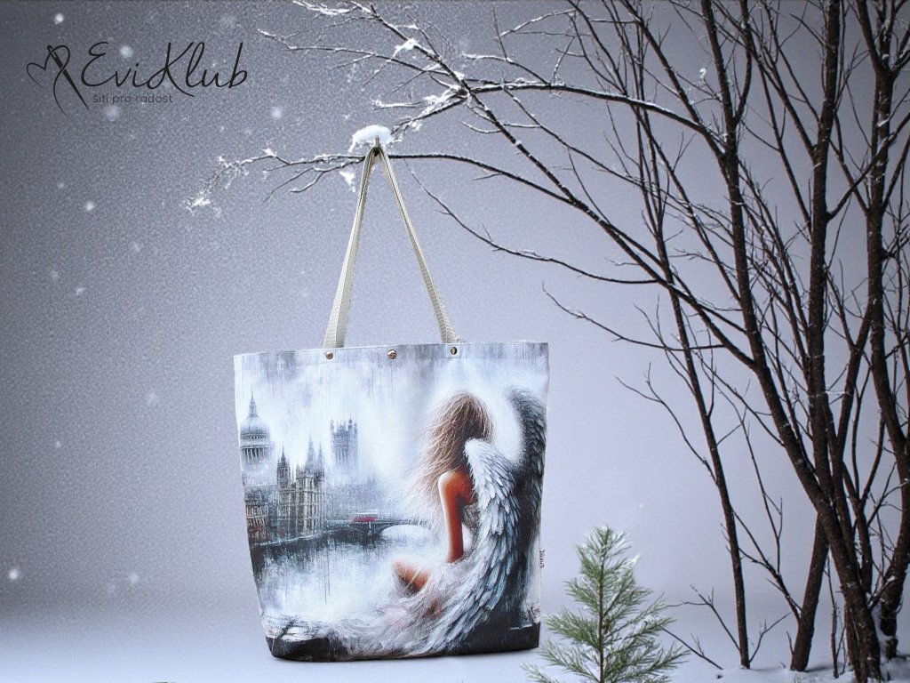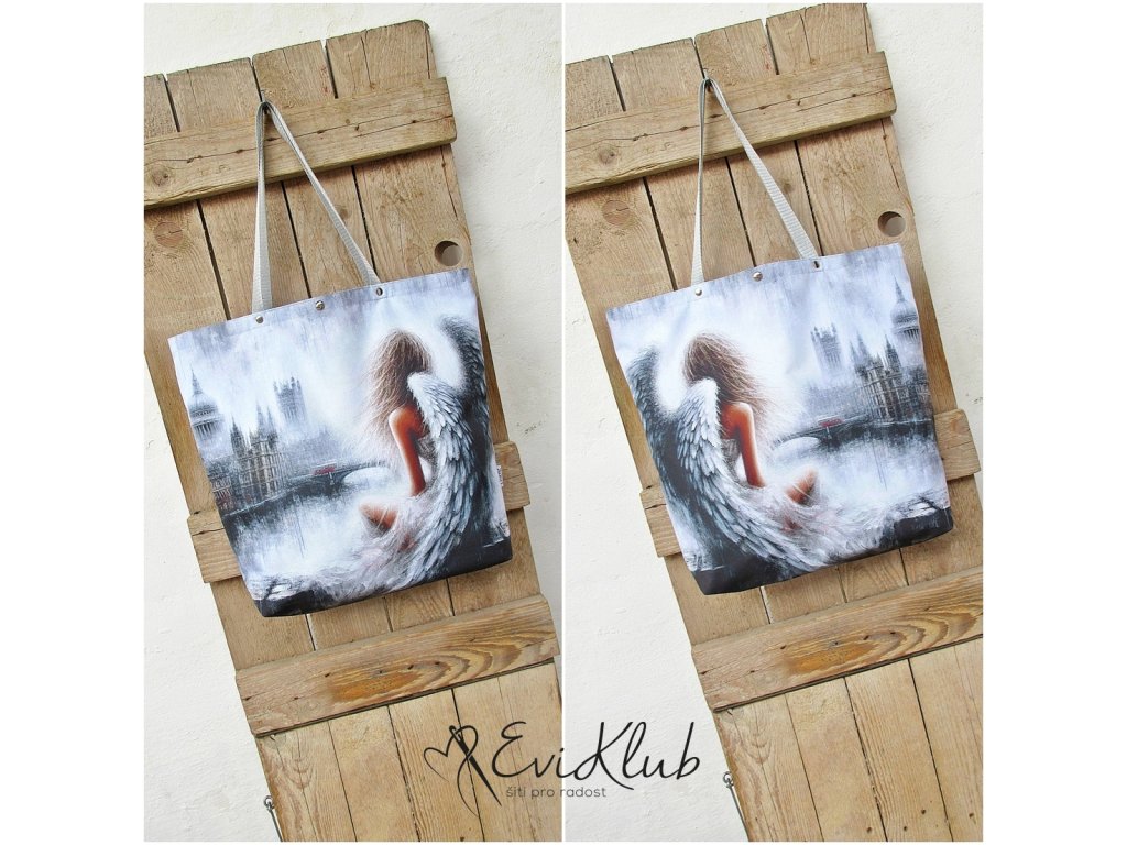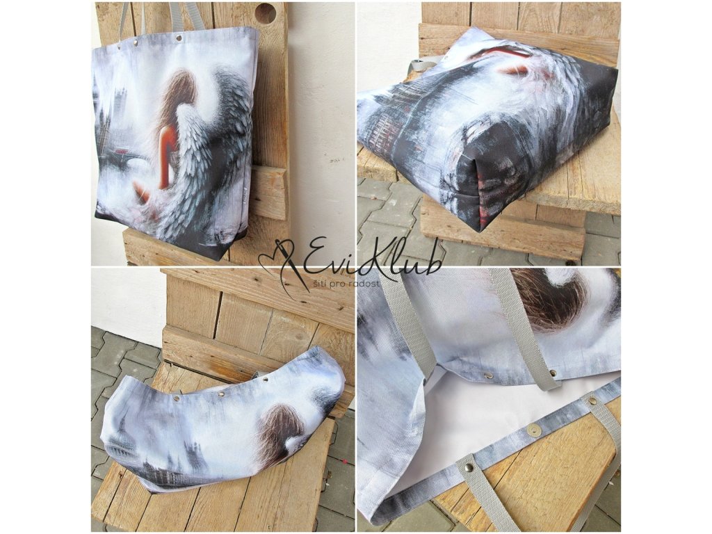 Vypodšívkovaná elegantní taška či nákupka. Všechny okraje jsou zapravené, nikde nejsou vidět a díky dvojitým hřbetovým švům, které zároveň zvyšují odolnost a zátěž - taška unese téměř slona. Přední a zadní díl je obrázkový, spojený ve dnu, tudíž bez dolního švu . Dno má klasicky odšité rohy a v horním kraji jsou vsazená polypropylénová ucha, zajištěná nýtky. Mezi nimi ve středu horního kraje je kulatá magnetka, kterou lze tašku rychle uzavřít.