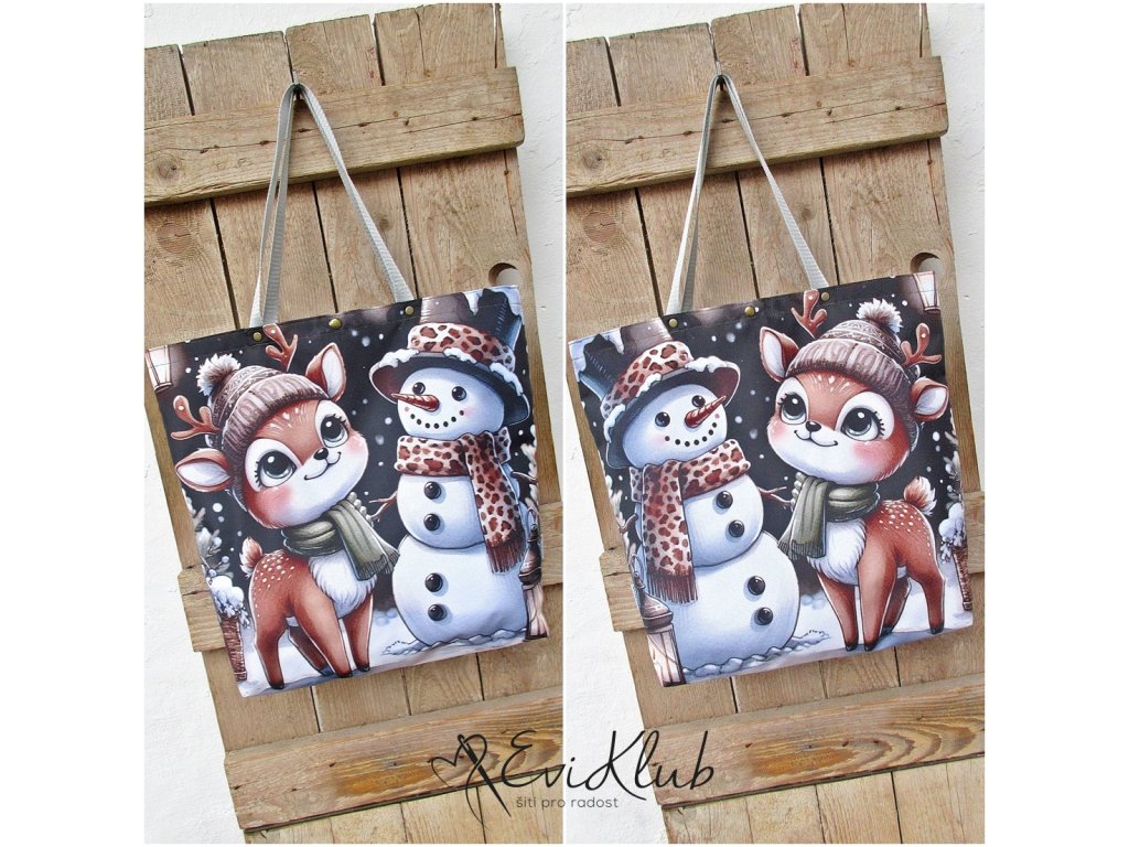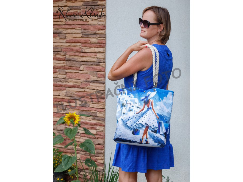 Vypodšívkovaná elegantní taška či nákupka. Všechny okraje jsou zapravené, nikde nejsou vidět a díky dvojitým hřbetovým švům, které zároveň zvyšují odolnost a zátěž - taška unese téměř slona. Přední a zadní díl je obrázkový, spojený ve dnu, tudíž bez dolního švu . Dno má klasicky odšité rohy a v horním kraji jsou vsazená polypropylénová ucha, zajištěná nýtky. Mezi nimi ve středu horního kraje je kulatá magnetka, kterou lze tašku rychle uzavřít.