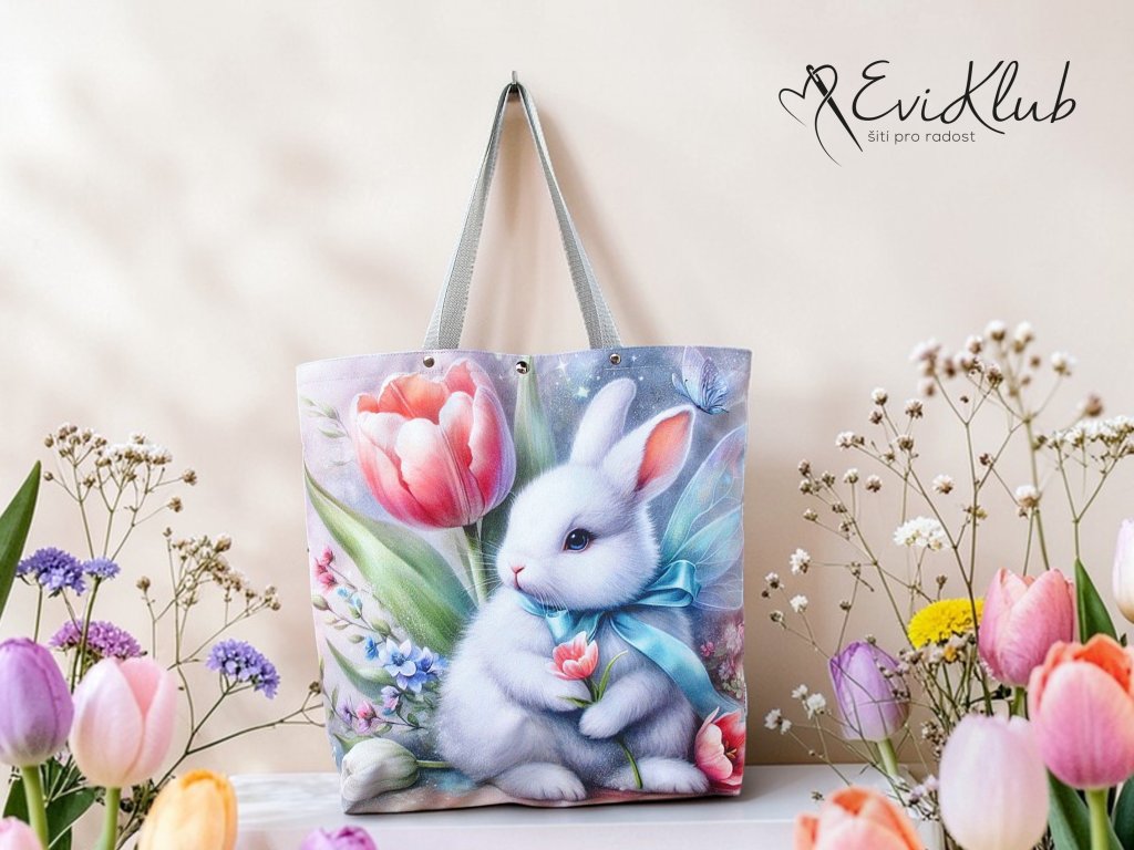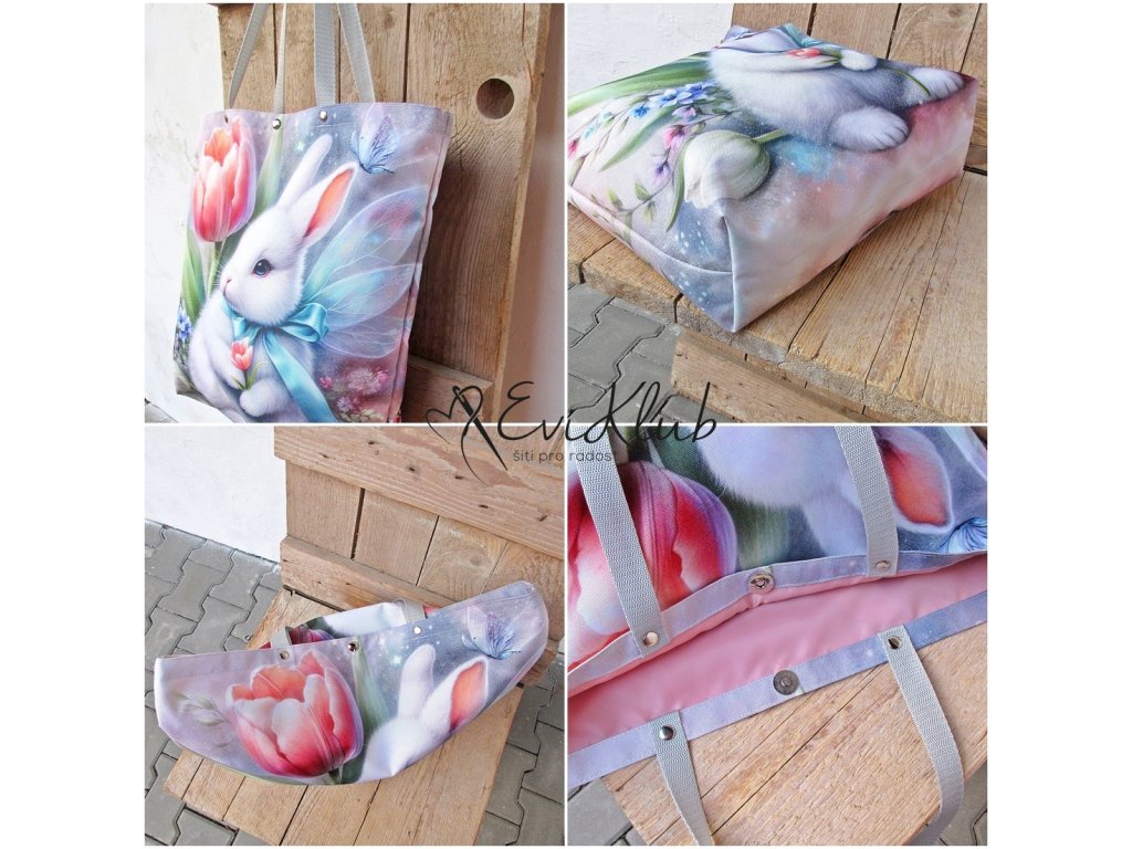 Vypodšívkovaná elegantní taška či nákupka. Všechny okraje jsou zapravené, nikde nejsou vidět a díky dvojitým hřbetovým švům, které zároveň zvyšují odolnost a zátěž - taška unese téměř slona. Přední a zadní díl je obrázkový, spojený ve dnu, tudíž bez dolního švu . Dno má klasicky odšité rohy a v horním kraji jsou vsazená polypropylénová ucha, zajištěná nýtky. Mezi nimi ve středu horního kraje je kulatá magnetka, kterou lze tašku rychle uzavřít.