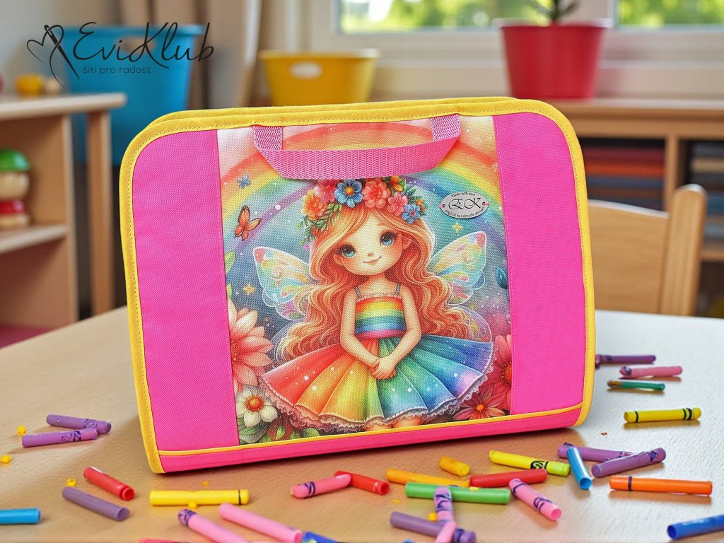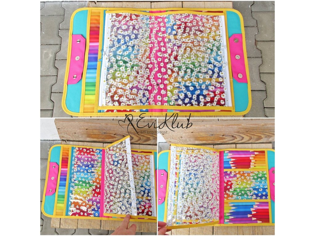 Pevný, vyztužený organizér pro děti, ale i spisovka pro dospělé, přesto na omak příjemně měkký díky vnější výztuži. Rychlou jednoduchou úpravou vnitřních kapsiček a přihrádek lze využít i jako obal na NB, tablet, pastelkovník pro děti... apod.